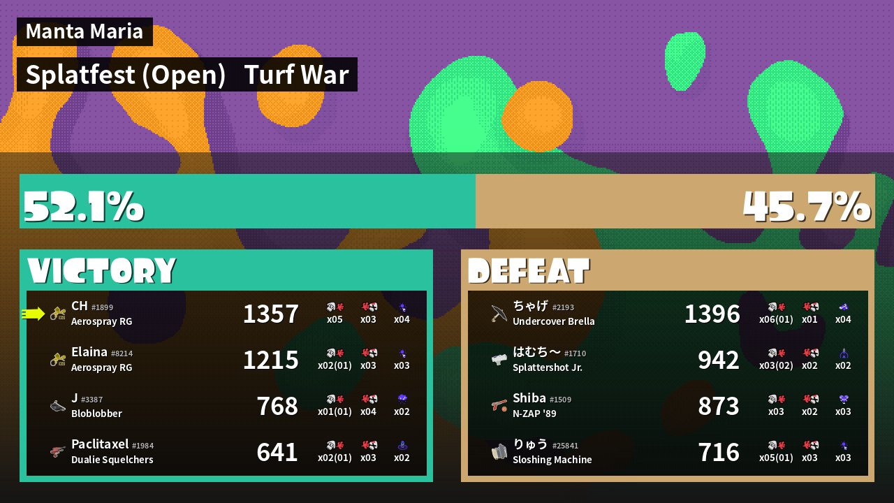 | Medals |  #1 Overall Splatter  #1 Turf Inker  #1 Enemy Splatter |