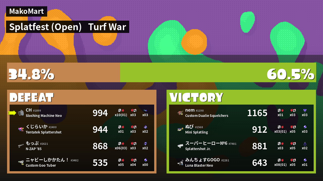 | Medals | #1 Overall Splatter #1 Turf Inker #1 Popular Target | ||