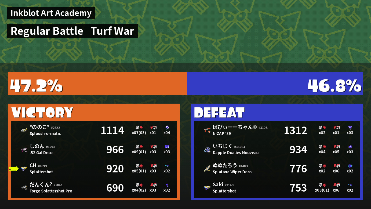| Weapon | Splattershot ( Suction Bomb / Trizooka) | ||