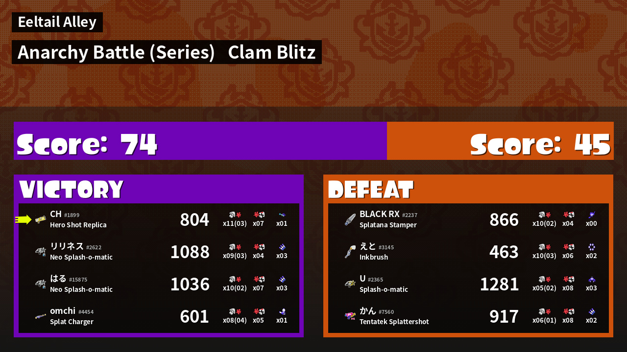 | Mode | Clam Blitz - Anarchy Battle (Series) |