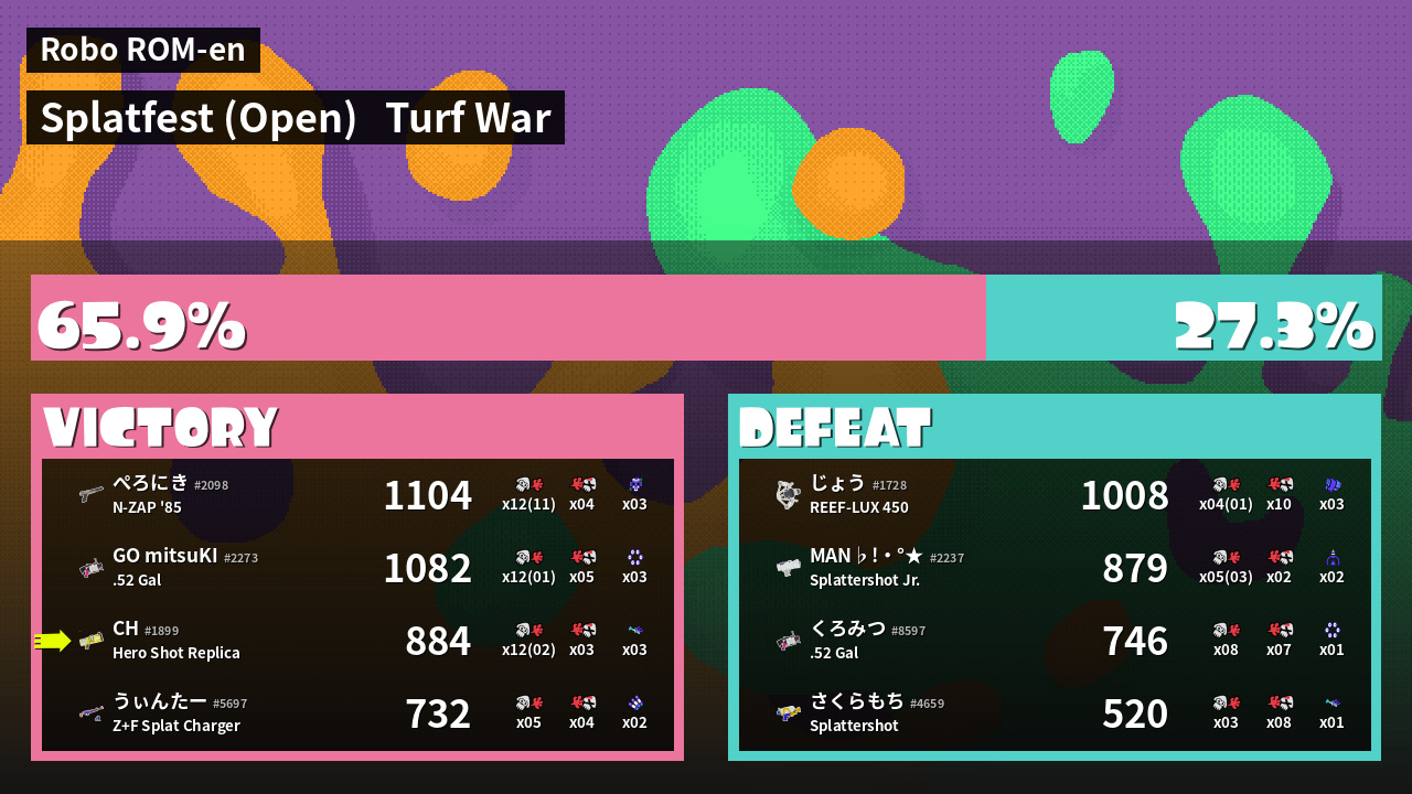 | 才貌双全的主唱  うぃんたー #5697 |  Z+F Splat Charger                    | 732 | 5 + 0 | 4 | 1.25 |  2 | |