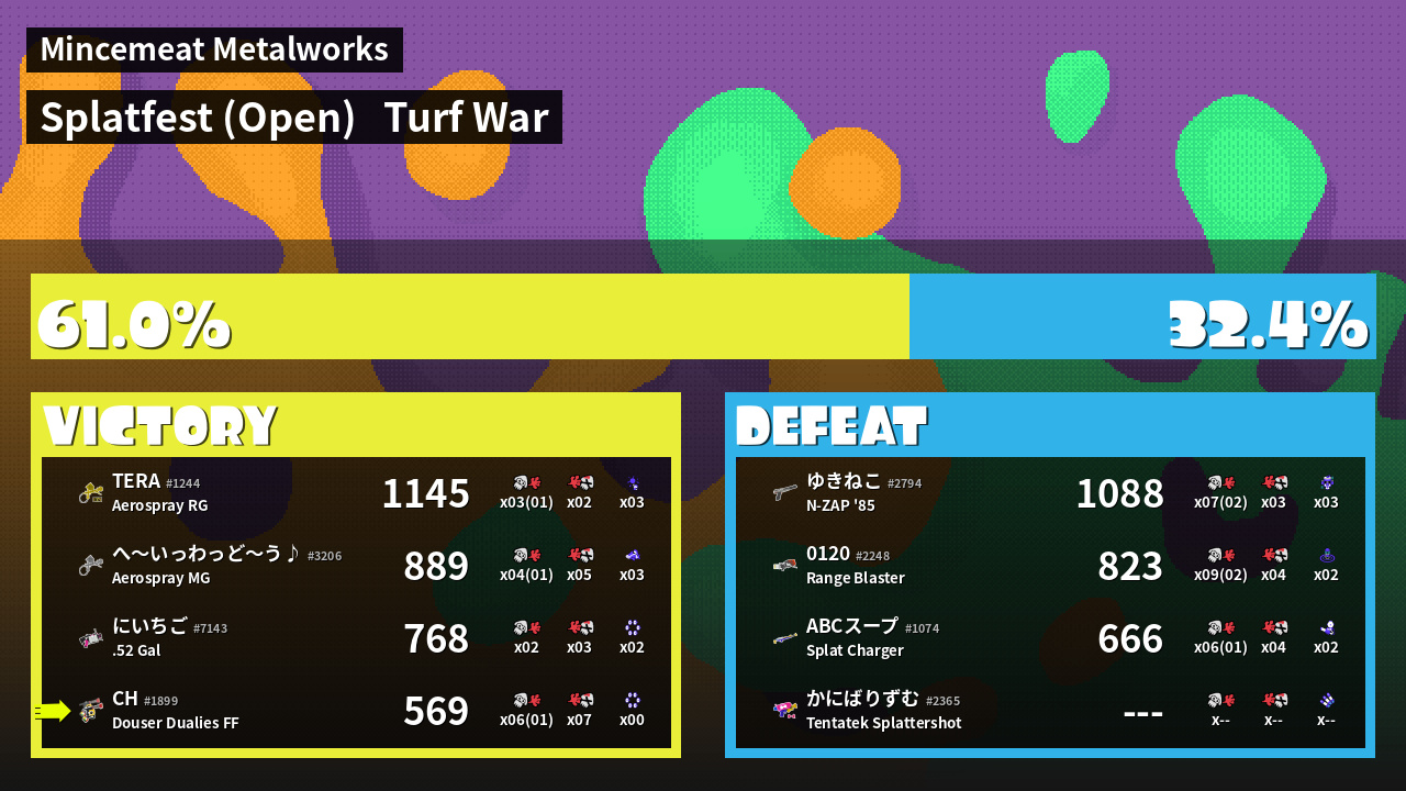| Medals | #1 Overall Splatter #1 Popular Target #1 Enemy Splatter | ||