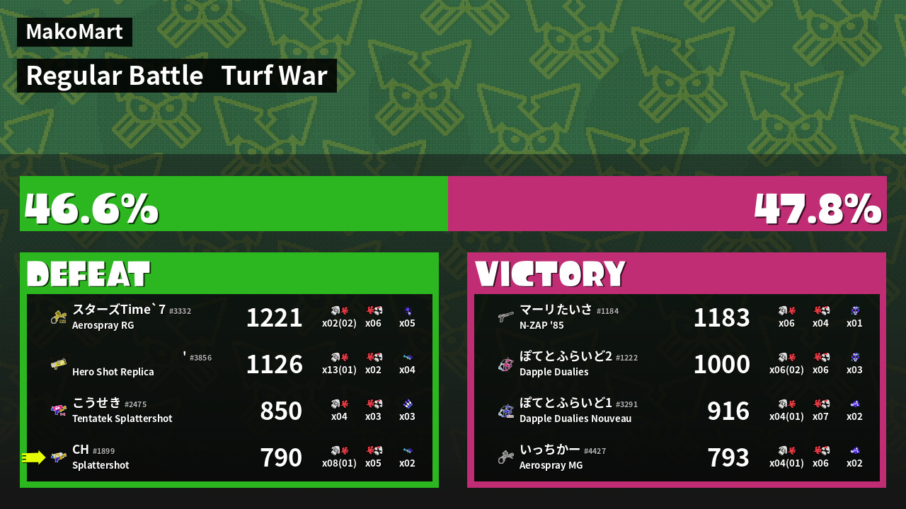 | Mode | Turf War - Regular Battle | ||