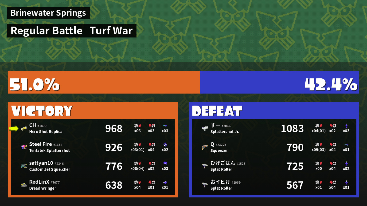 | Mode | Turf War - Regular Battle | ||