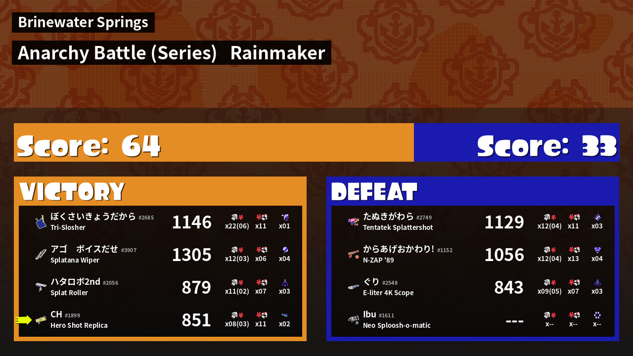 | Mode | Rainmaker - Anarchy Battle (Series) |