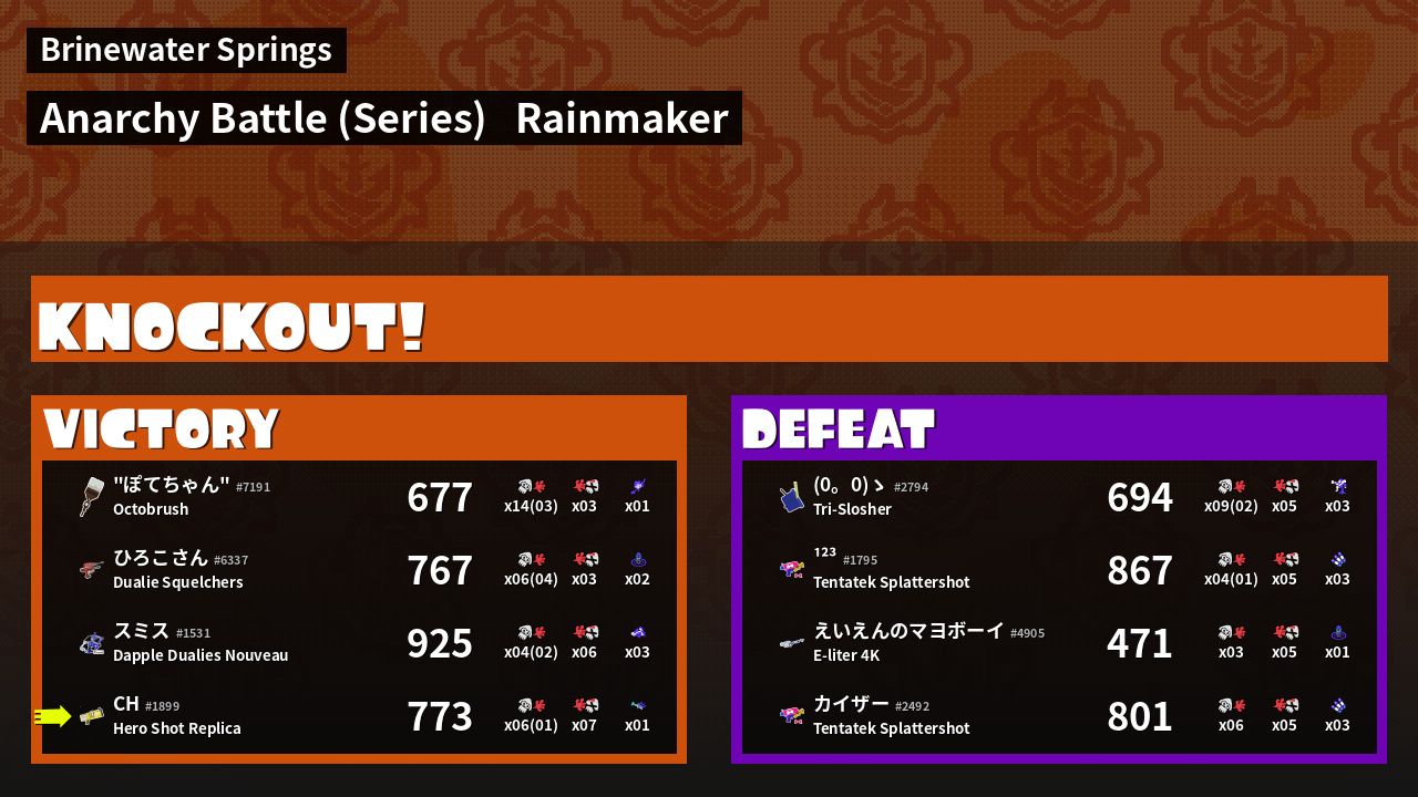 | Mode | Rainmaker - Anarchy Battle (Series) |