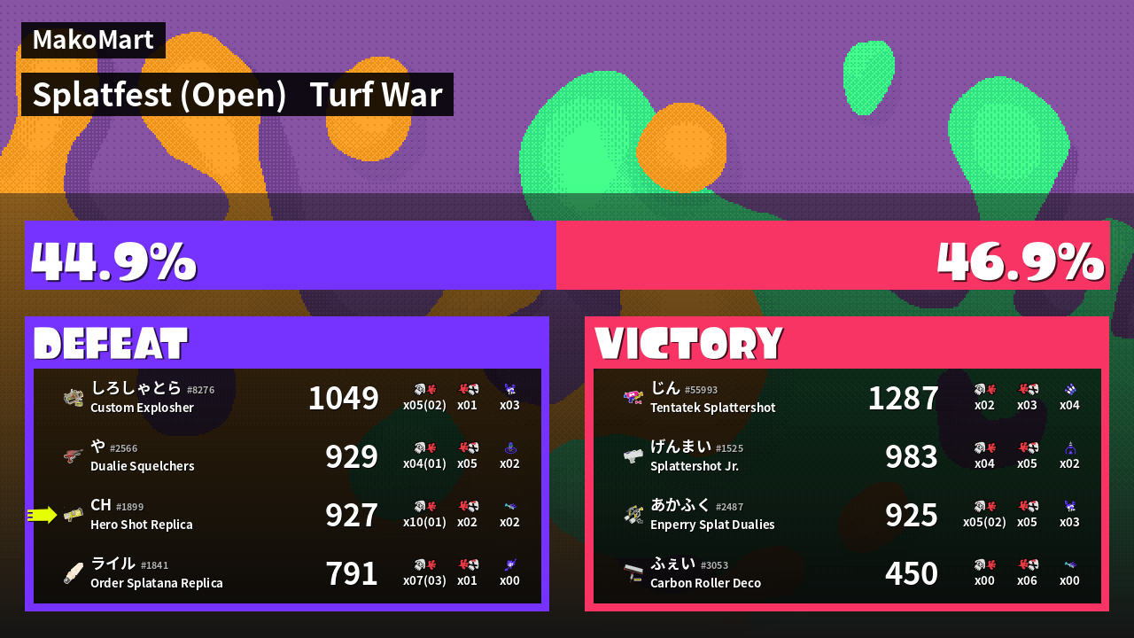 | Medals | #1 Overall Splatter #1 Home-Base Inker #1 Enemy Splatter | ||