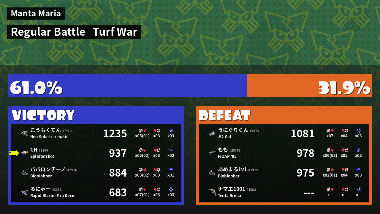 | Mode | Turf War - Regular Battle | ||