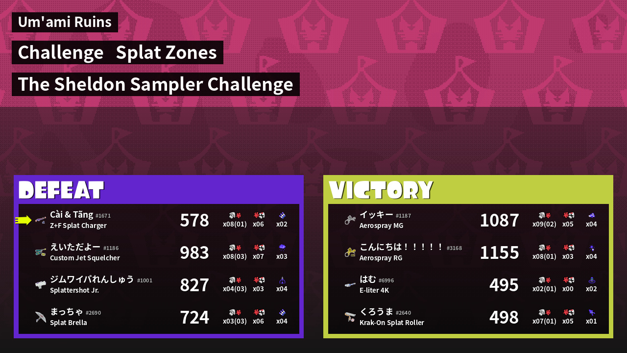 | Medals | #1 Overall Splatter #1 Popular Target #1 Super Jump Spot |