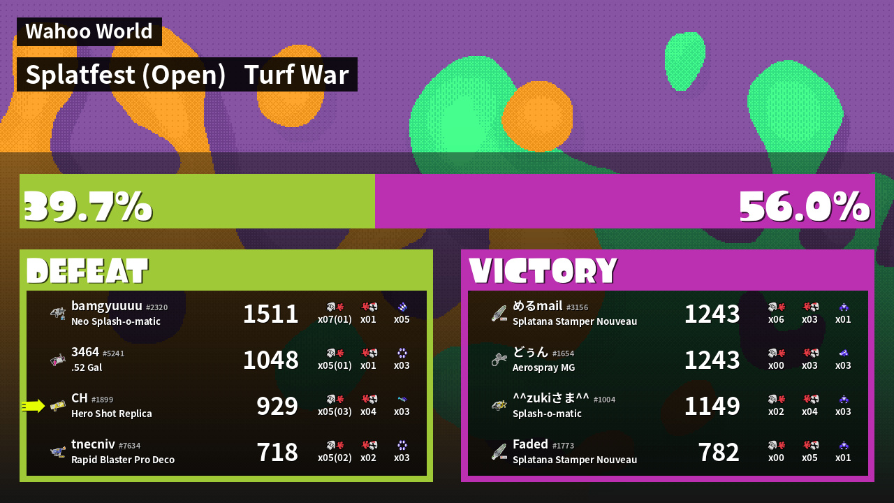 | Medals | #1 Splat Assister #1 Base Defender #1 Trizooka User | ||