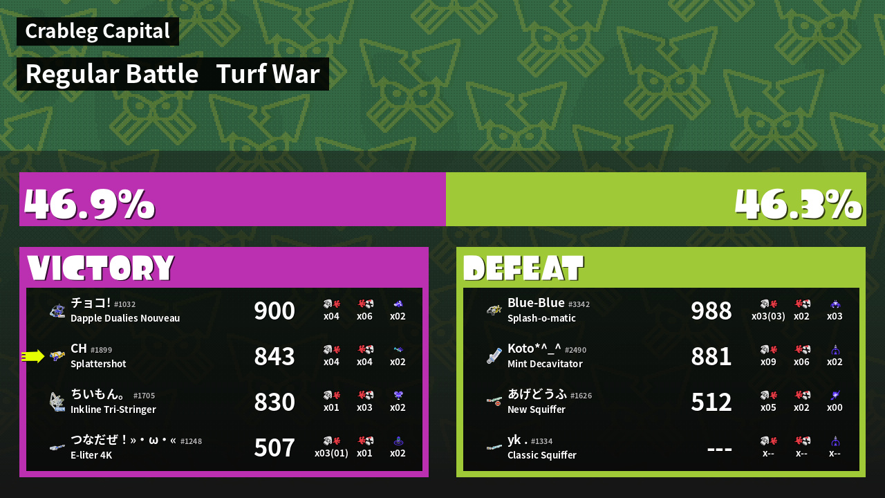 | Medals | #1 Overall Splatter #1 Enemy-Base Inker #1 Enemy Splatter | ||