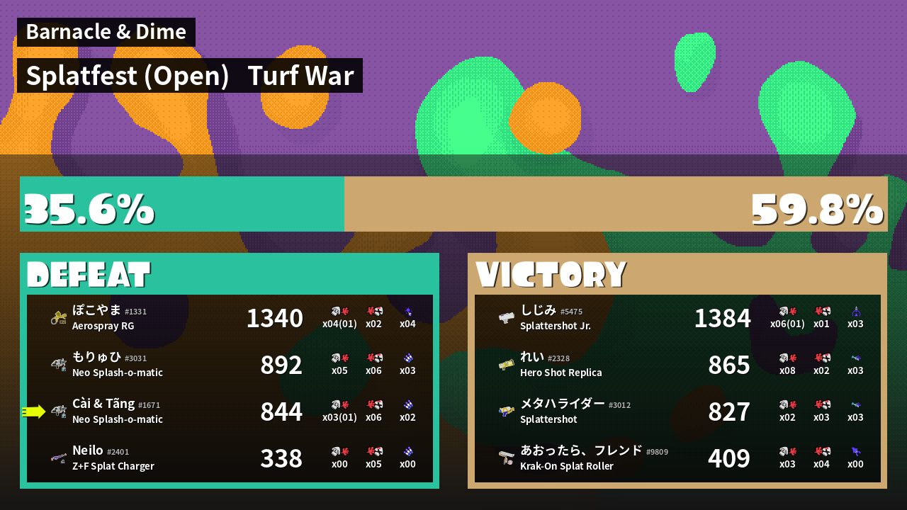 | Medals | #1 Popular Target #1 Splat Assister #2 Home-Base Inker |