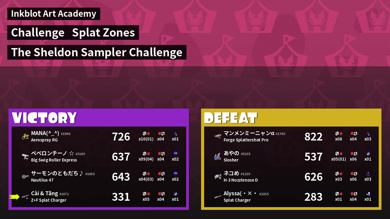 | Medals | #2 Splat Zone Guard #2 Enemy Splatter |