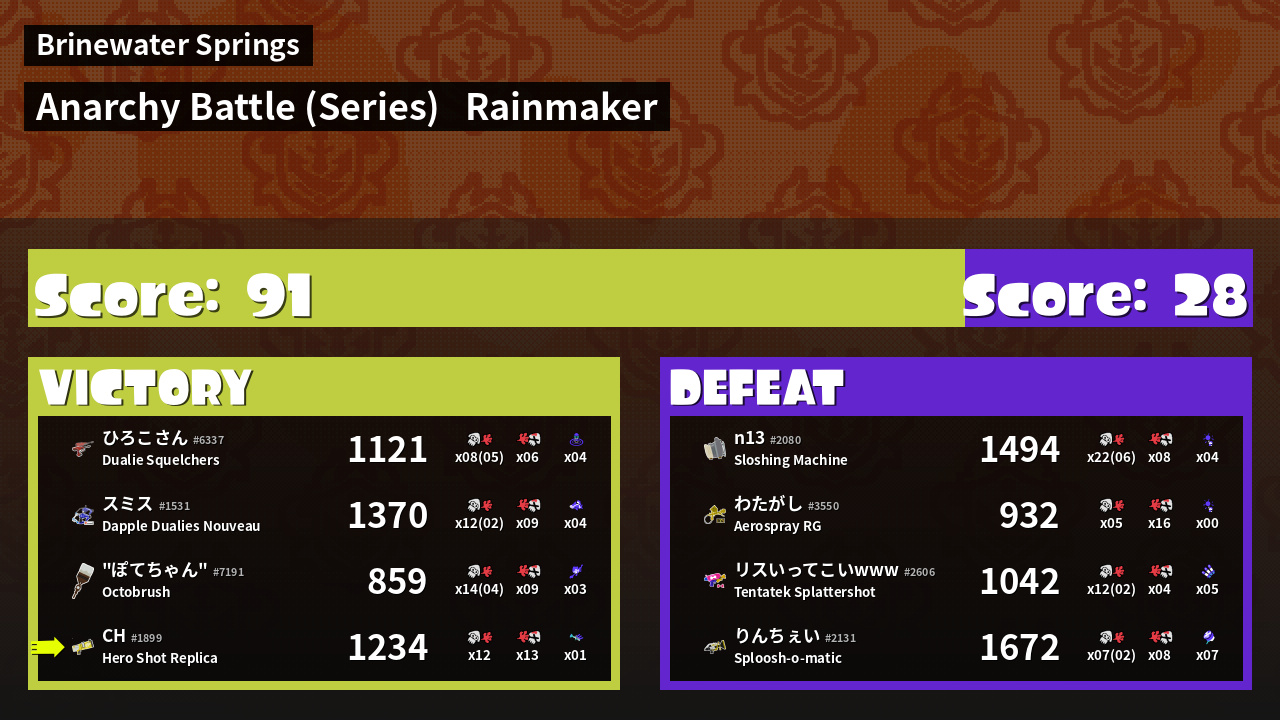 | Mode | Rainmaker - Anarchy Battle (Series) |