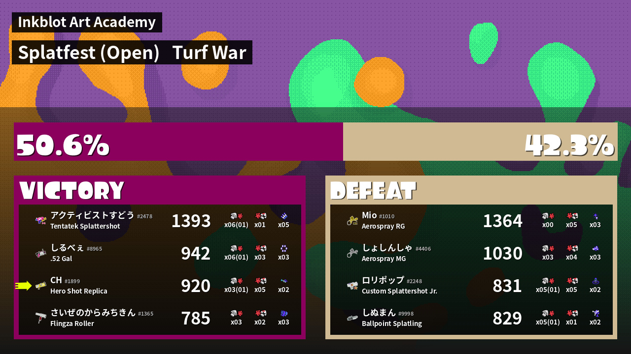 | Medals | #1 Super Jump Spot #1 Splat Assister #2 Home-Base Inker | ||