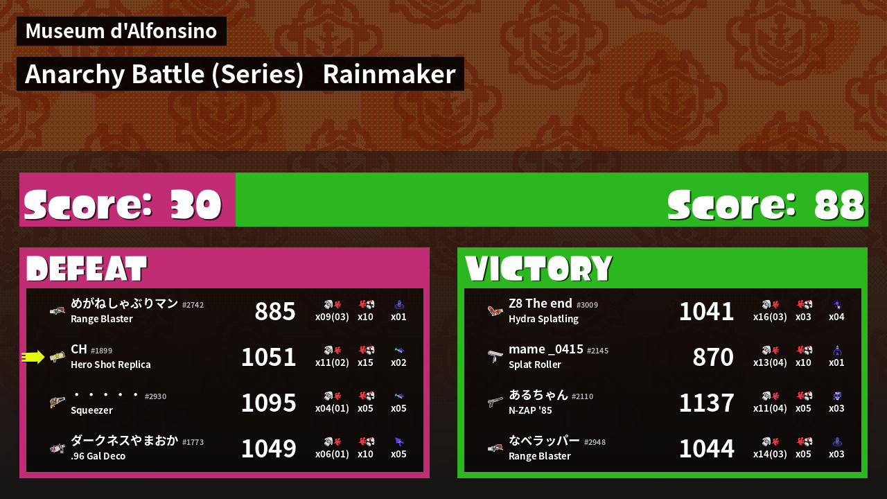 | Mode | Rainmaker - Anarchy Battle (Series) |