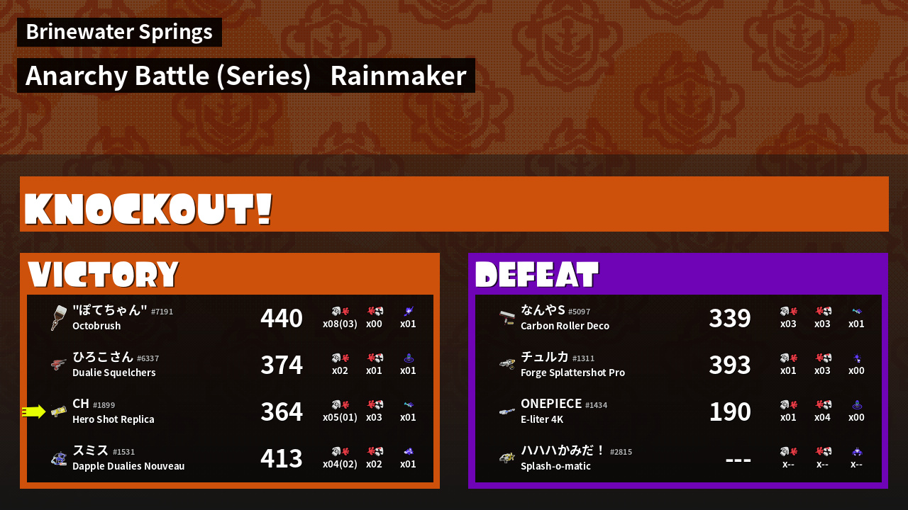 | Mode | Rainmaker - Anarchy Battle (Series) |