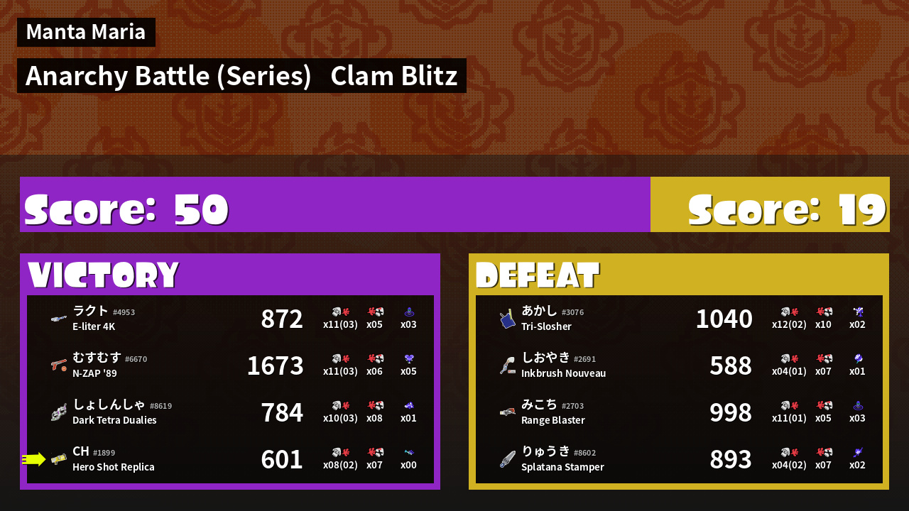 | Mode | Clam Blitz - Anarchy Battle (Series) |