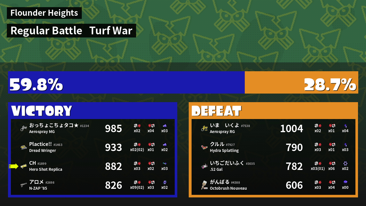 | Mode | Turf War - Regular Battle | ||