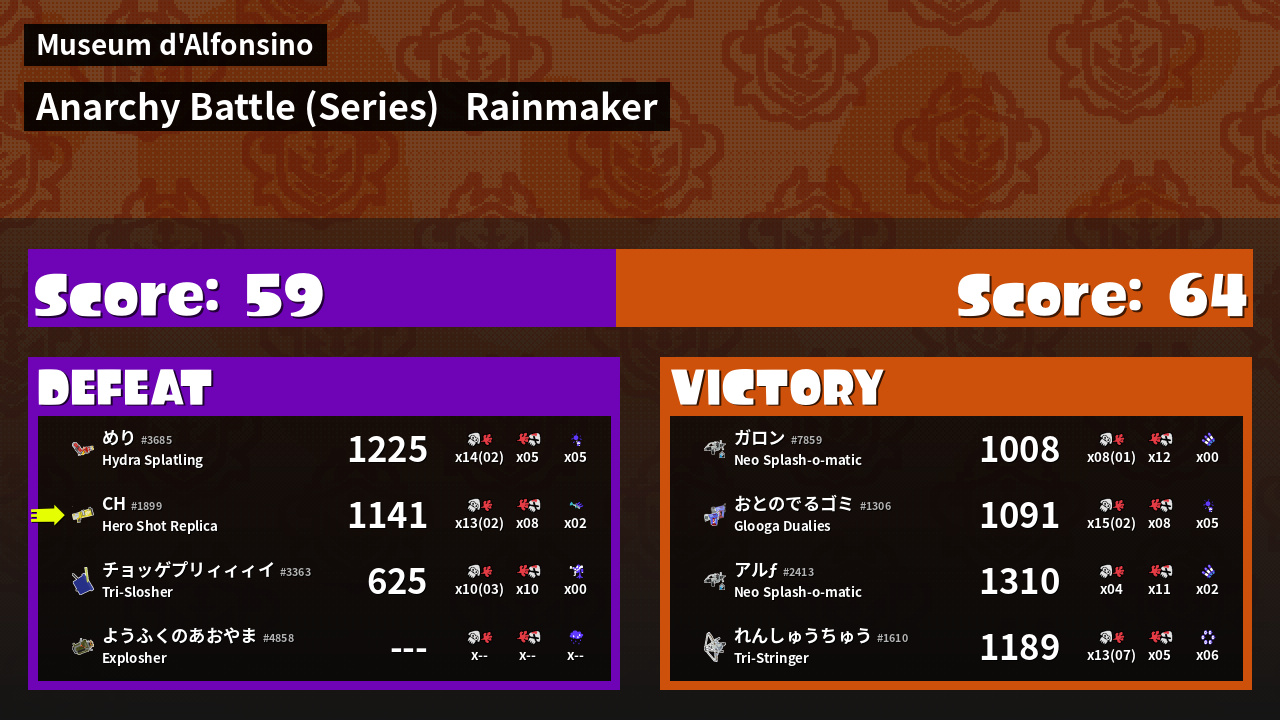 | Mode | Rainmaker - Anarchy Battle (Series) |