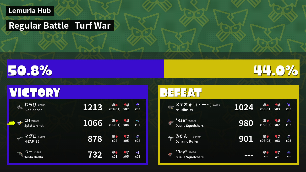 | Mode | Turf War - Regular Battle | ||