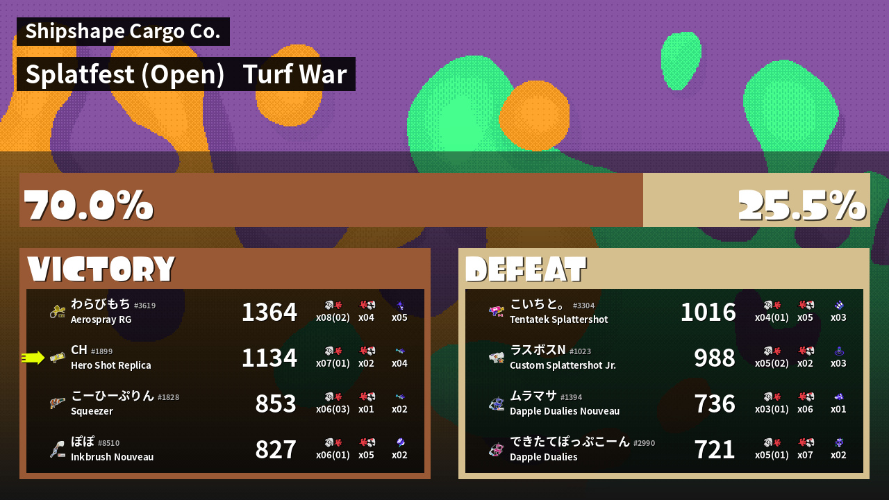 | Medals | #1 Home-Base Inker #1 Enemy Splatter #1 Base Defender | ||