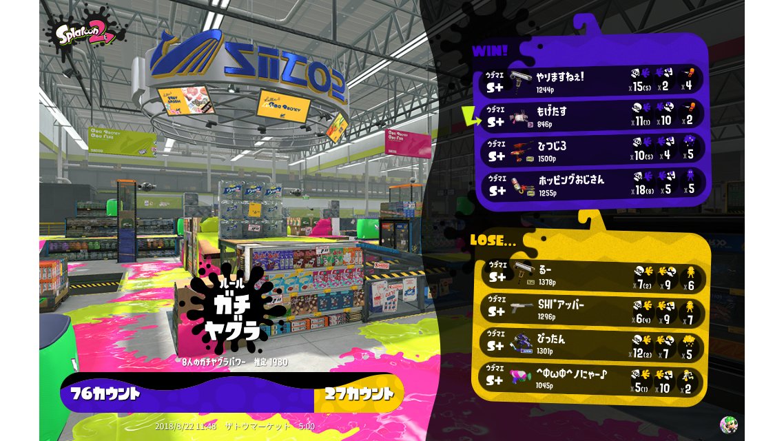 | Name | Weapon | Level | Rank | Inked | k+a/sp | k/d |