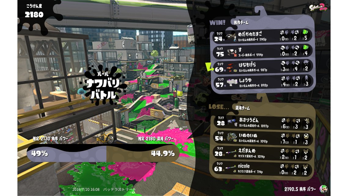 | Their team's splatfest power | 2,180 | |||||||||||||||||||||||||||||||