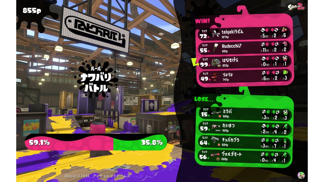 | Mode | Turf War - Regular Battle | |||||||||||||||||||||||||||||||||||||