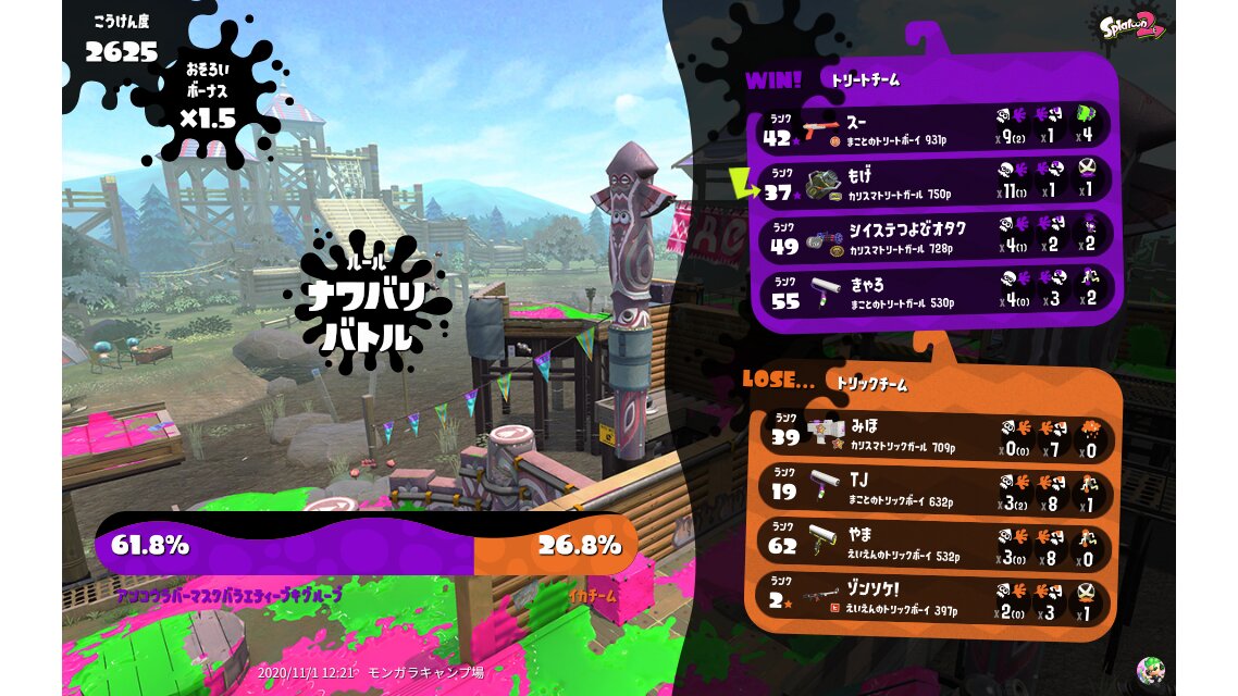 | Splatfest Title | トリート Champion 830 → トリート Champion 935 | ||||||||||||||||||||||||||||||||||