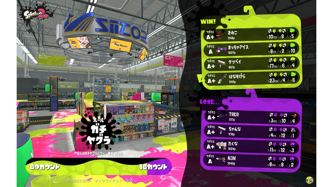 | Name | Weapon | Level | Rank | Inked | k+a/sp | k/d |