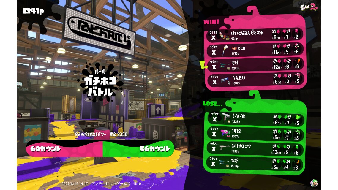 | Name | Weapon | Level | Rank | Inked | k+a/sp | k/d |