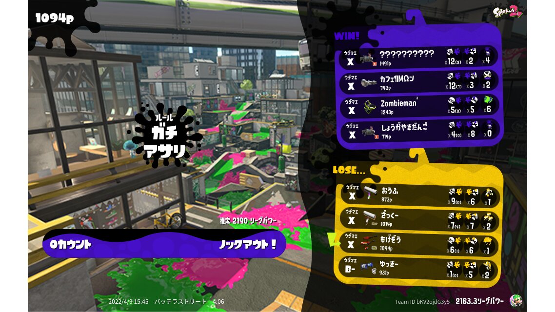 | Mode | Clam Blitz - League Battle (Twin) | ||||||||||||||||||||||||||||