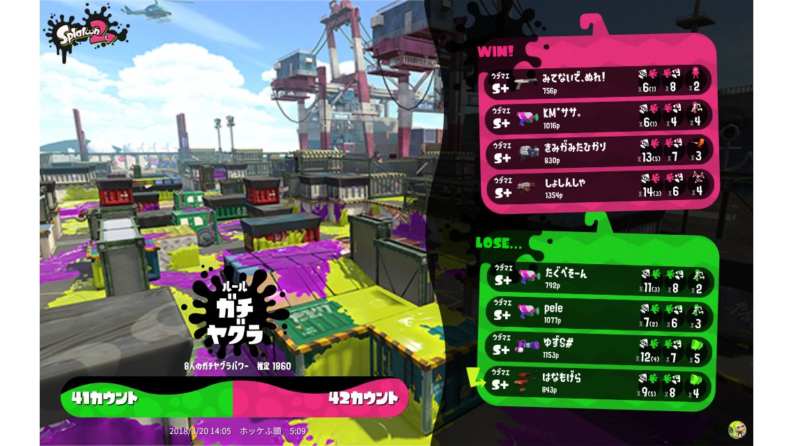 | Name | Weapon | Level | Rank | Inked | k+a/sp | k/d |