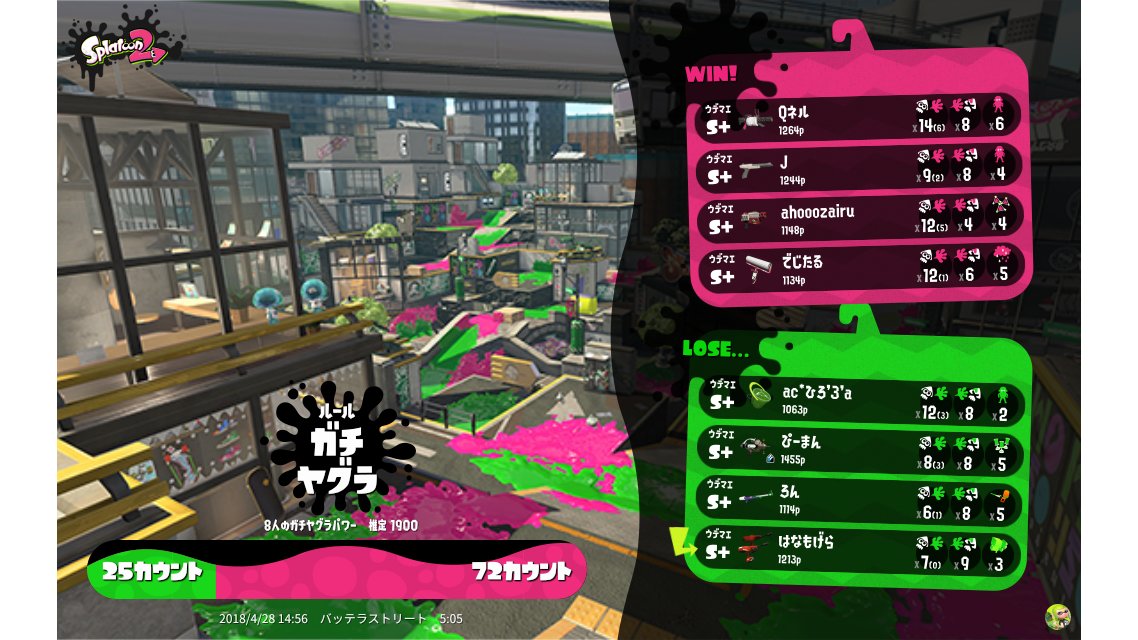 | Name | Weapon | Level | Rank | Inked | k+a/sp | k/d |