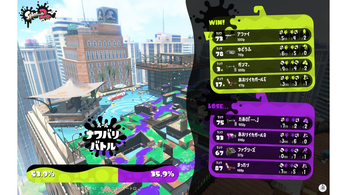 | Mode | Turf War - Regular Battle | |||||||||||||||||||||||||||||||