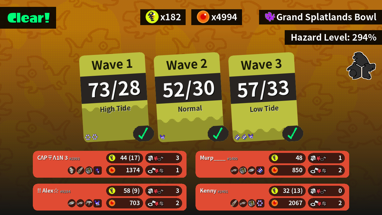 | Weapons | Grizzco Stringer Grizzco Splatana Grizzco Slosher | Grizzco Brella Grizzco Charger Grizzco Roller | Grizzco Charger Grizzco Slosher Grizzco Brella | Grizzco Splatana Grizzco Charger Grizzco Slosher |