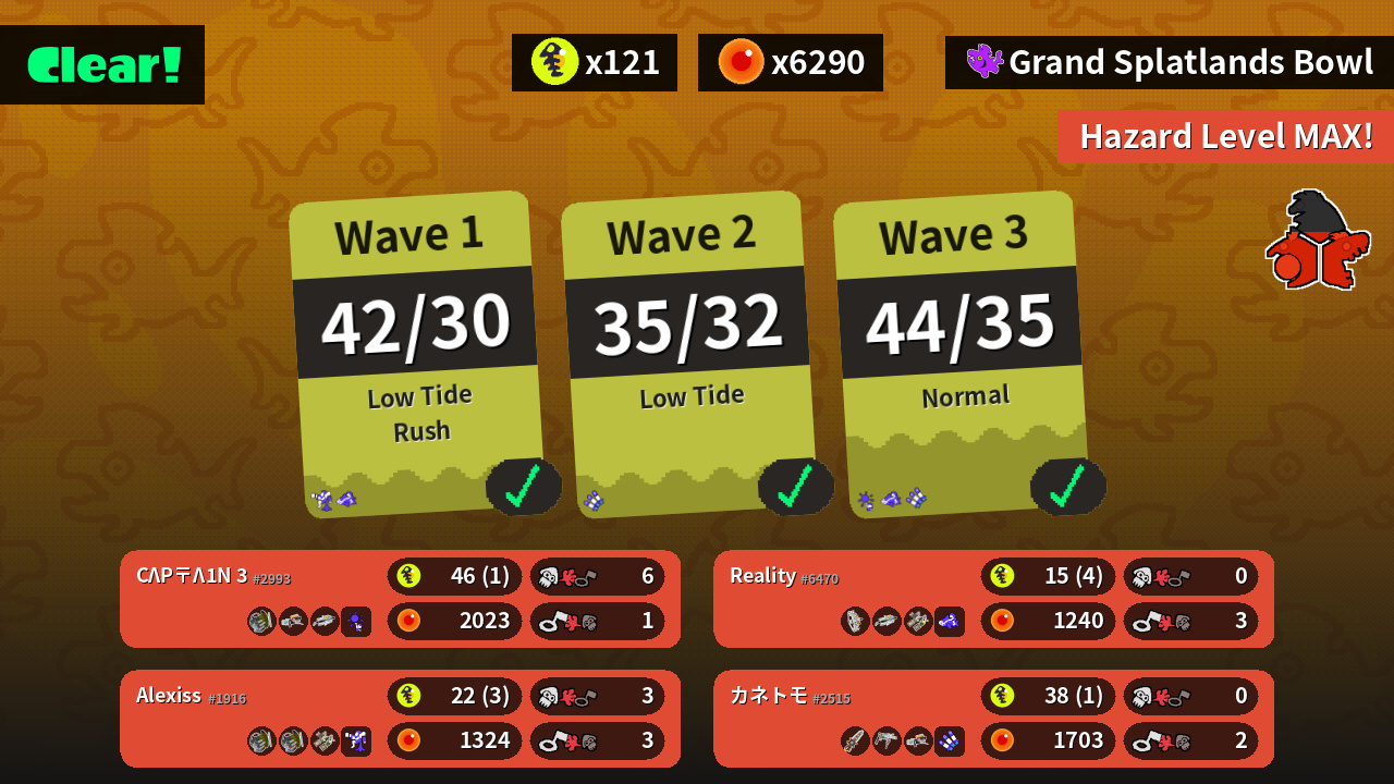 | Weapons | Grizzco Slosher Grizzco Blaster Grizzco Brella | Grizzco Splatana Grizzco Roller Grizzco Blaster | Grizzco Slosher Grizzco Slosher Grizzco Dualies | Grizzco Stringer Grizzco Brella Grizzco Dualies |