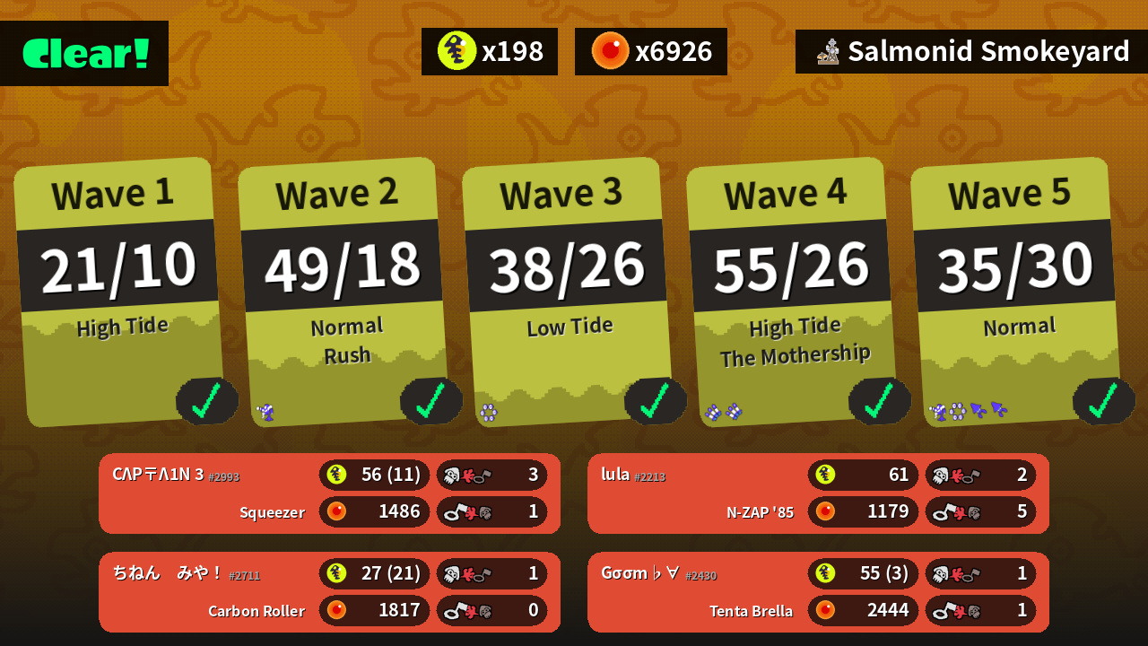 | Weapons | Squeezer | N-ZAP '85 | Tenta Brella | Carbon Roller |