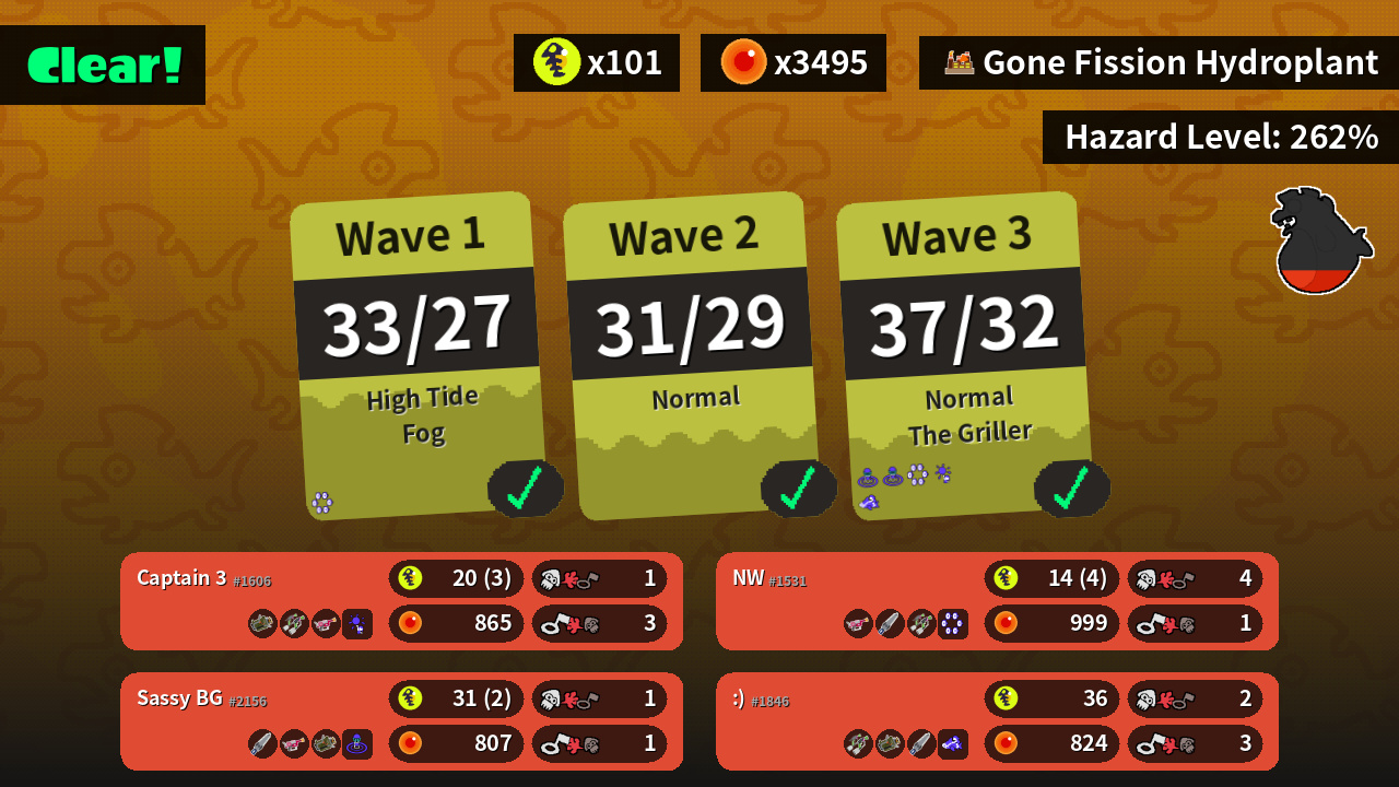 | Boss Salmonid | 11 | 13 | 11 | 12 |