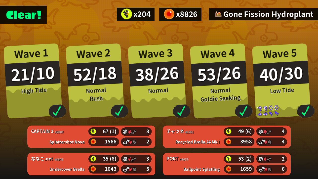 | Weapons | Splattershot Nova | Ballpoint Splatling | Recycled Brella 24 Mk I | Undercover Brella |