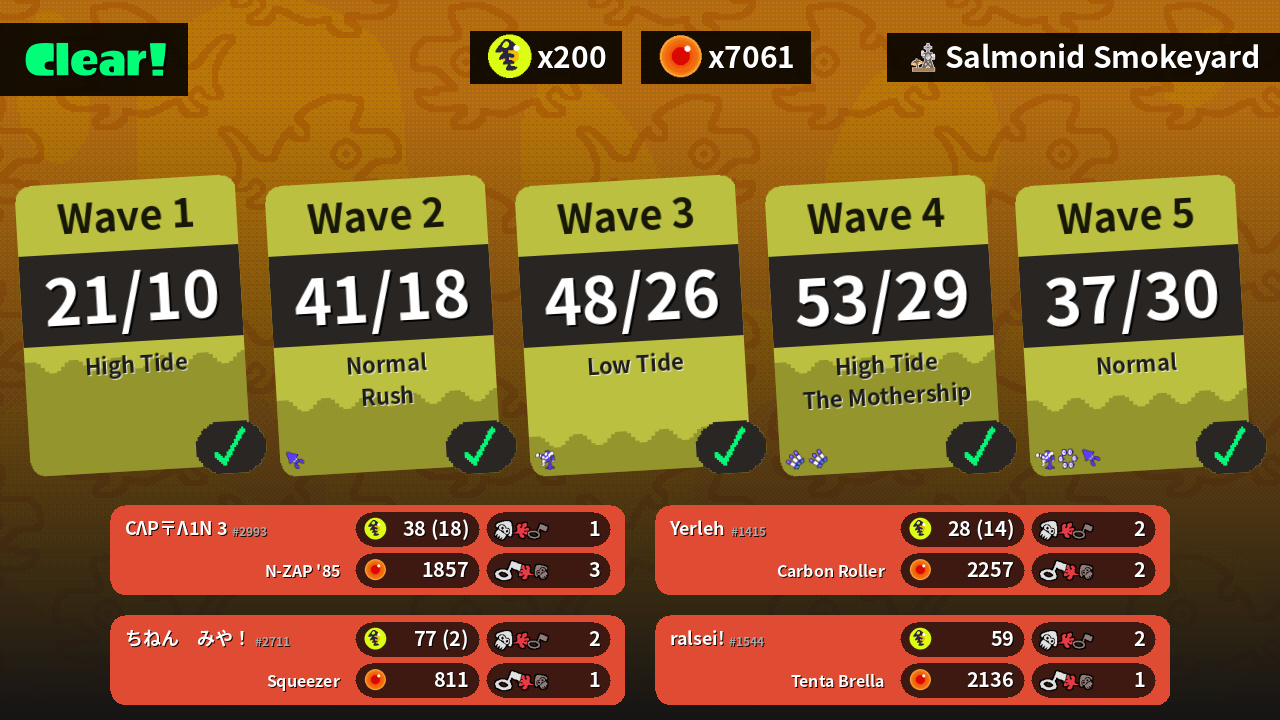 | Weapons | N-ZAP '85 | Squeezer | Tenta Brella | Carbon Roller |