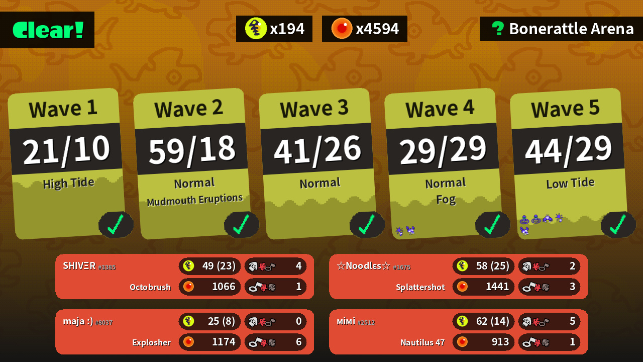 | Weapons | Octobrush | Nautilus 47 | Splattershot | Explosher |