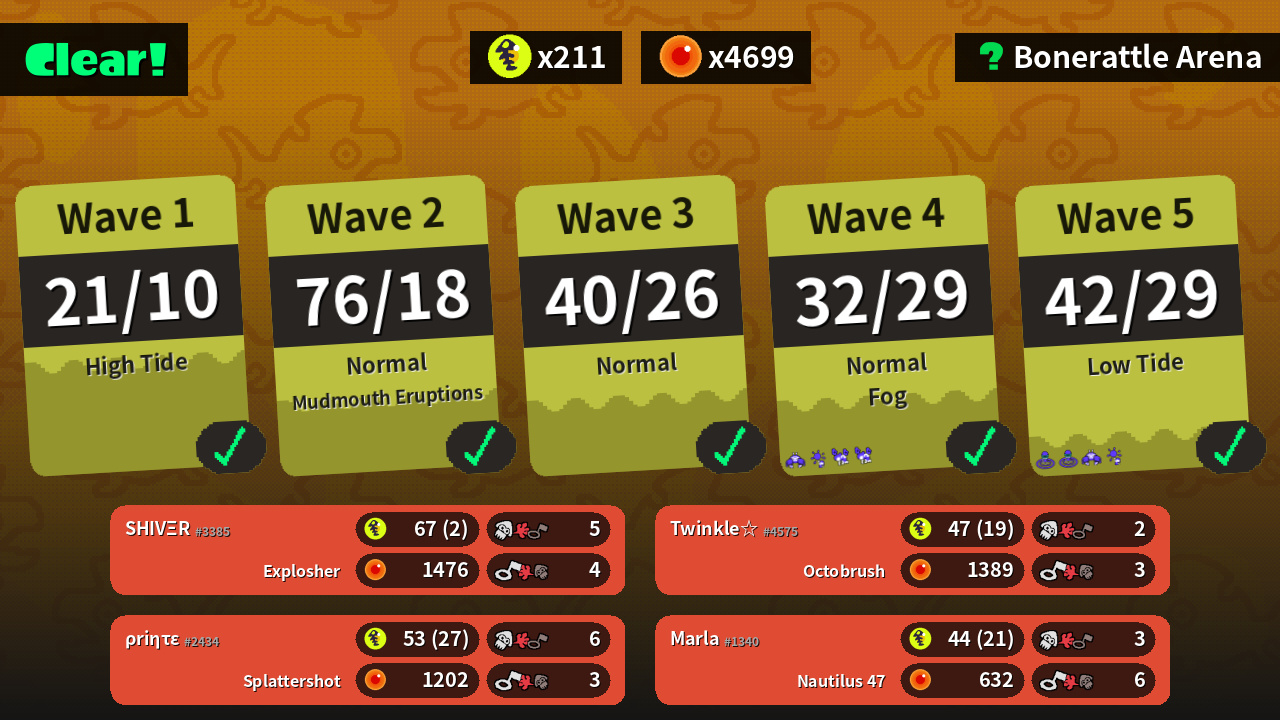 | Weapons | Explosher | Splattershot | Octobrush | Nautilus 47 |