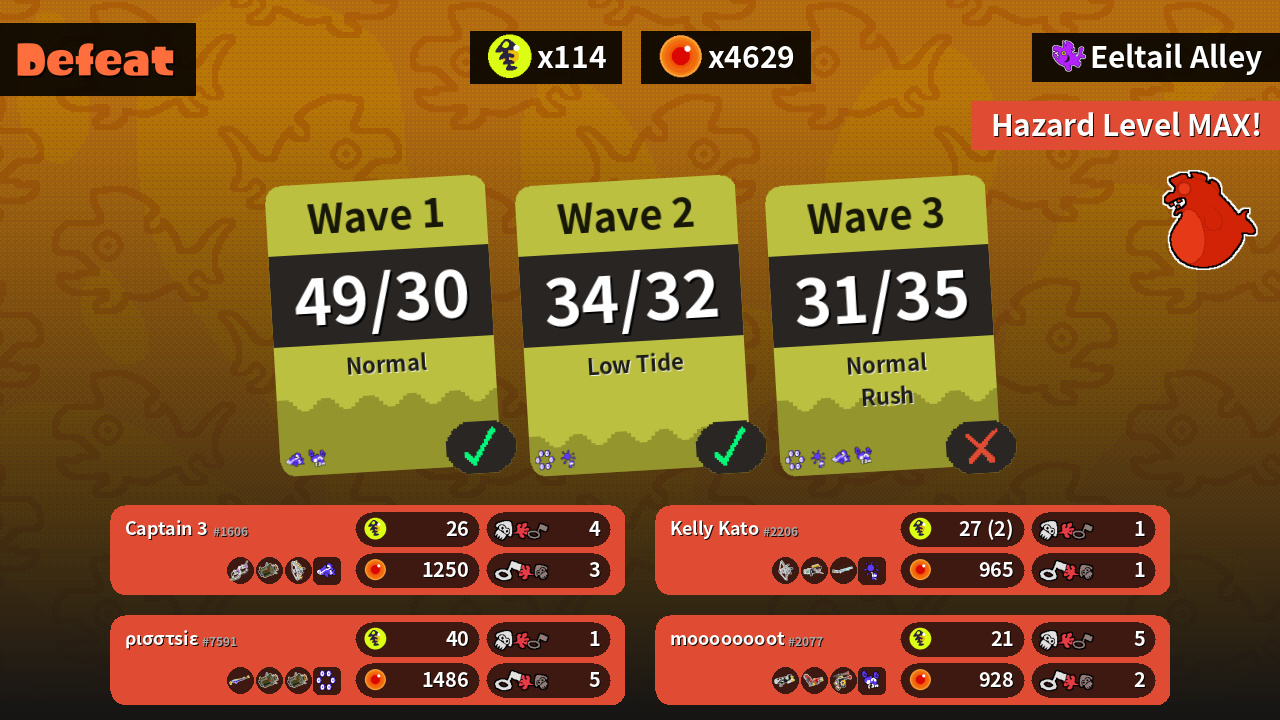 | Weapons | Dark Tetra Dualies Explosher Grizzco Stringer | Splat Charger Explosher Explosher | Tri-Stringer Grizzco Blaster Classic Squiffer | Splattershot Nova Hydra Splatling Douser Dualies FF |