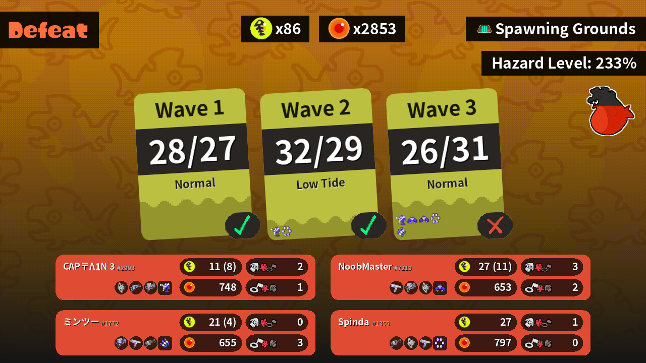 | Boss Salmonid | 19 | 15 | 11 | 12 |