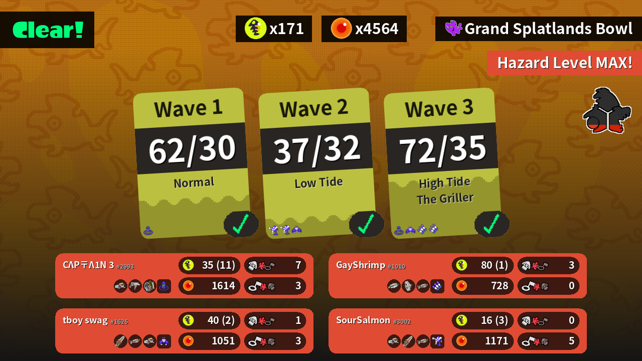 | Weapons | Grizzco Blaster Grizzco Roller Grizzco Slosher | Grizzco Brella Grizzco Stringer Grizzco Charger | Grizzco Splatana Grizzco Charger Grizzco Blaster | Grizzco Blaster Grizzco Splatana Grizzco Charger |
