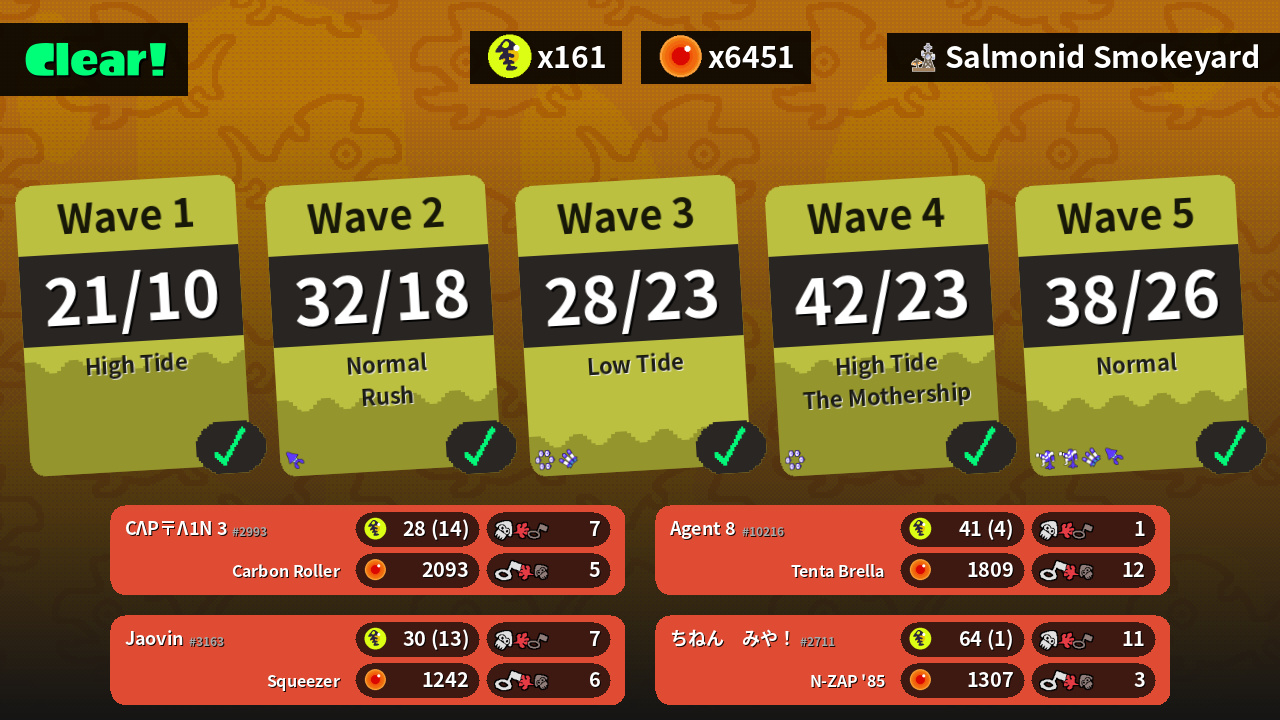 | Weapons | Carbon Roller | N-ZAP '85 | Tenta Brella | Squeezer |