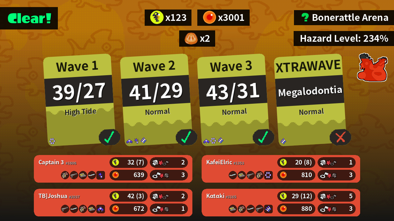 | Special | Booyah Bomb (1) | Crab Tank (2) | Triple Inkstrike (2) | Killer Wail 5.1 (2) |