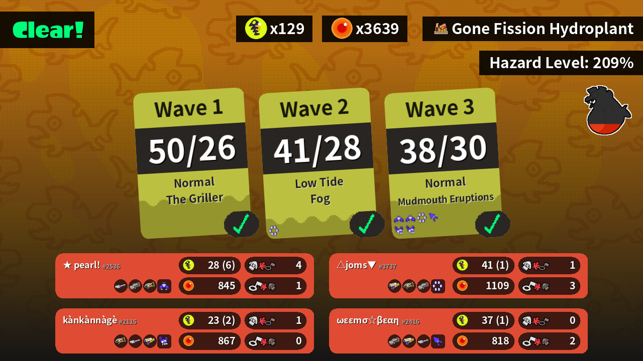 | Boss Salmonid | 4 | 12 | 13 | 12 |